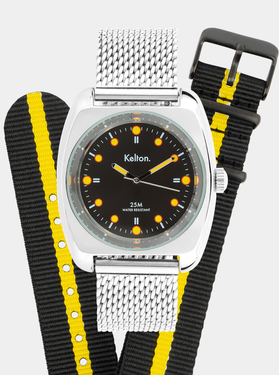 Depuis 1955, les montres Kelton accompagnent la société française dans chacun de ses mouvements. Explosion des loisirs, naissance des premières stars de la pop ou de la F1, joyeuse utopie modulaire des premiers modèles Colorama, c’est aussi l’âge d’or de la publicité débridée.
