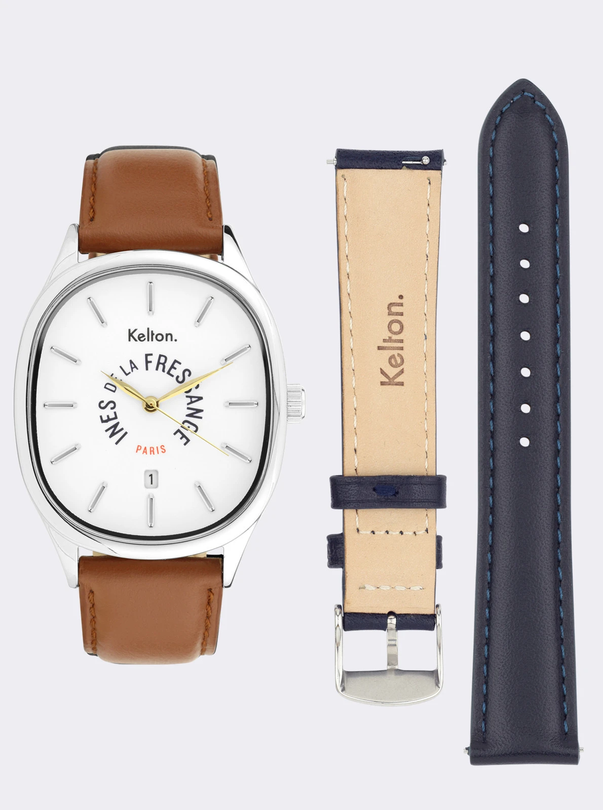 To vary styles, it is accompanied by a second quick-change bracelet.