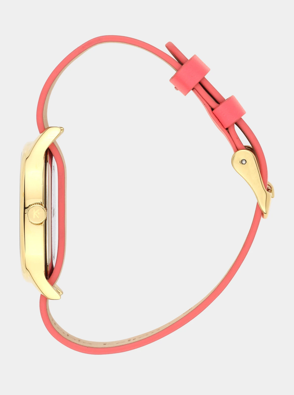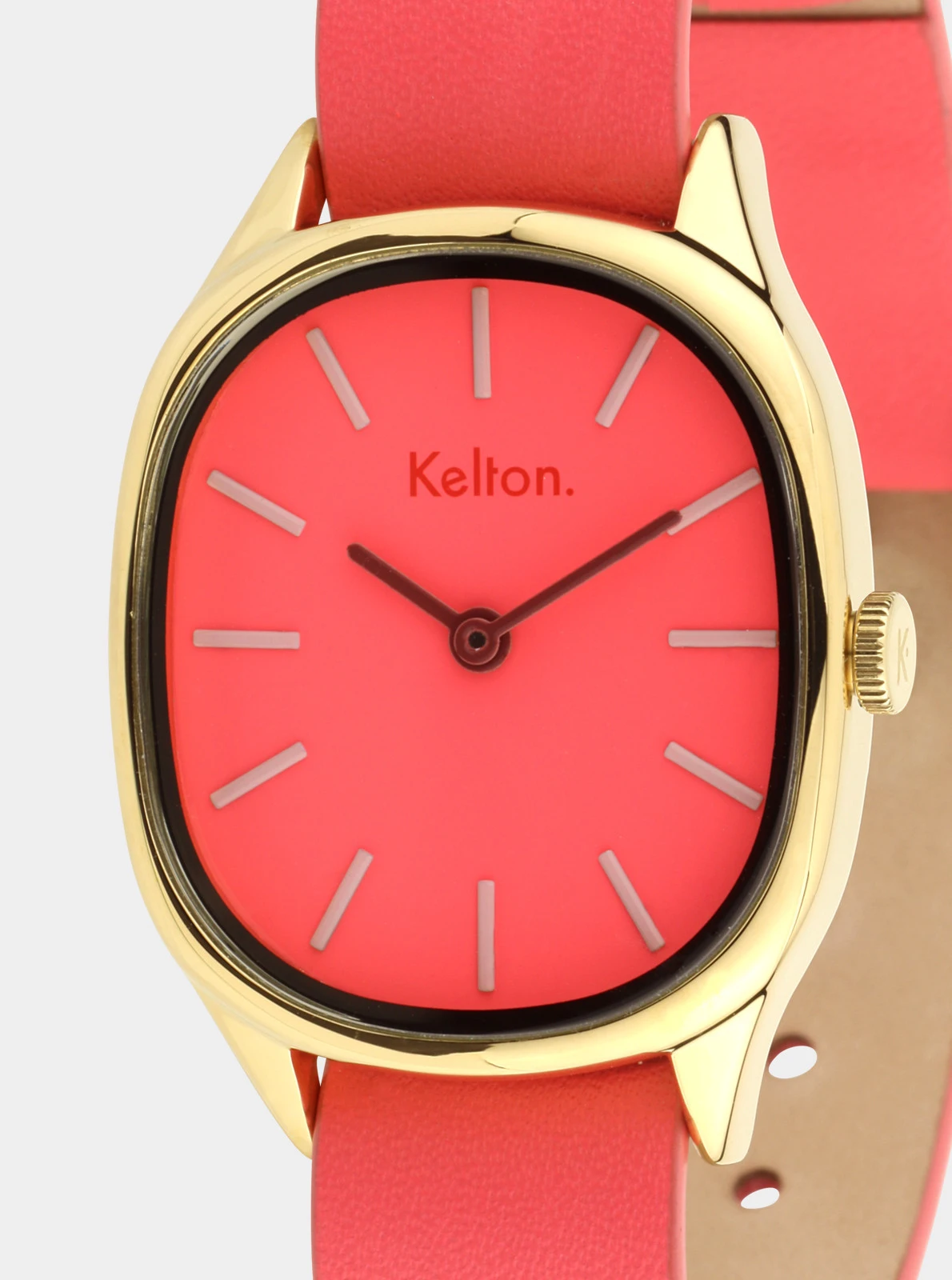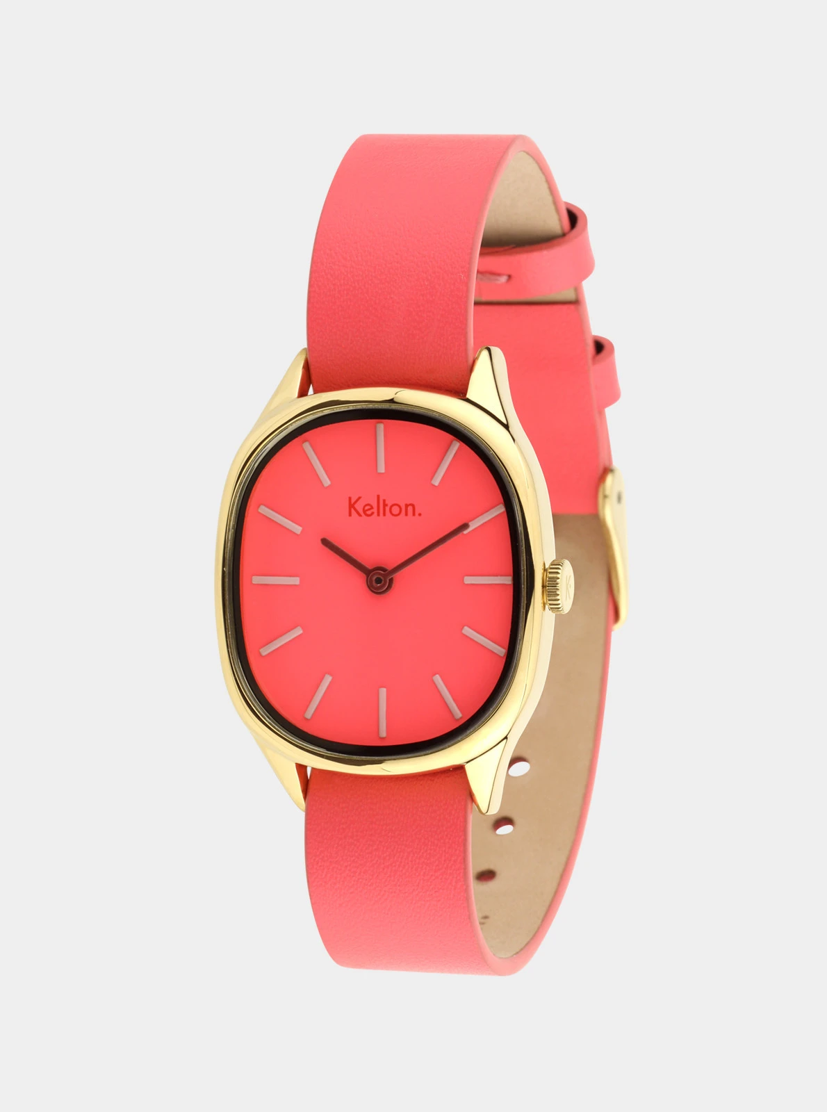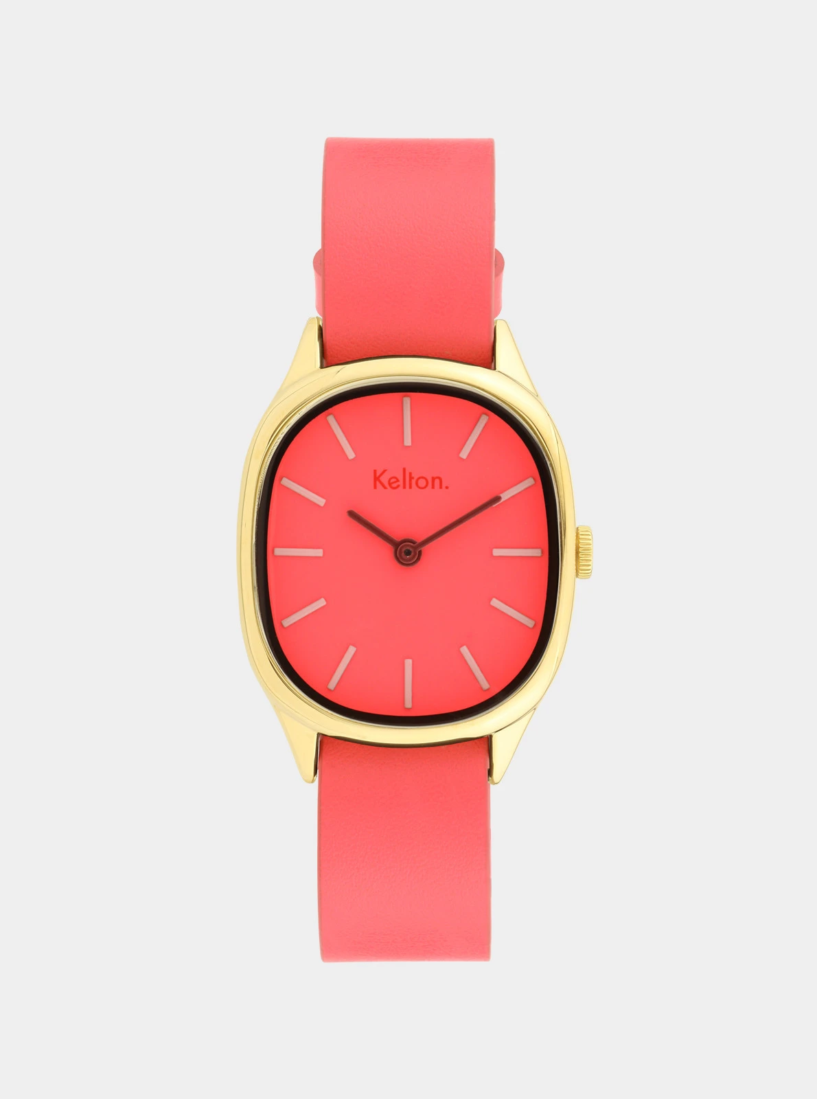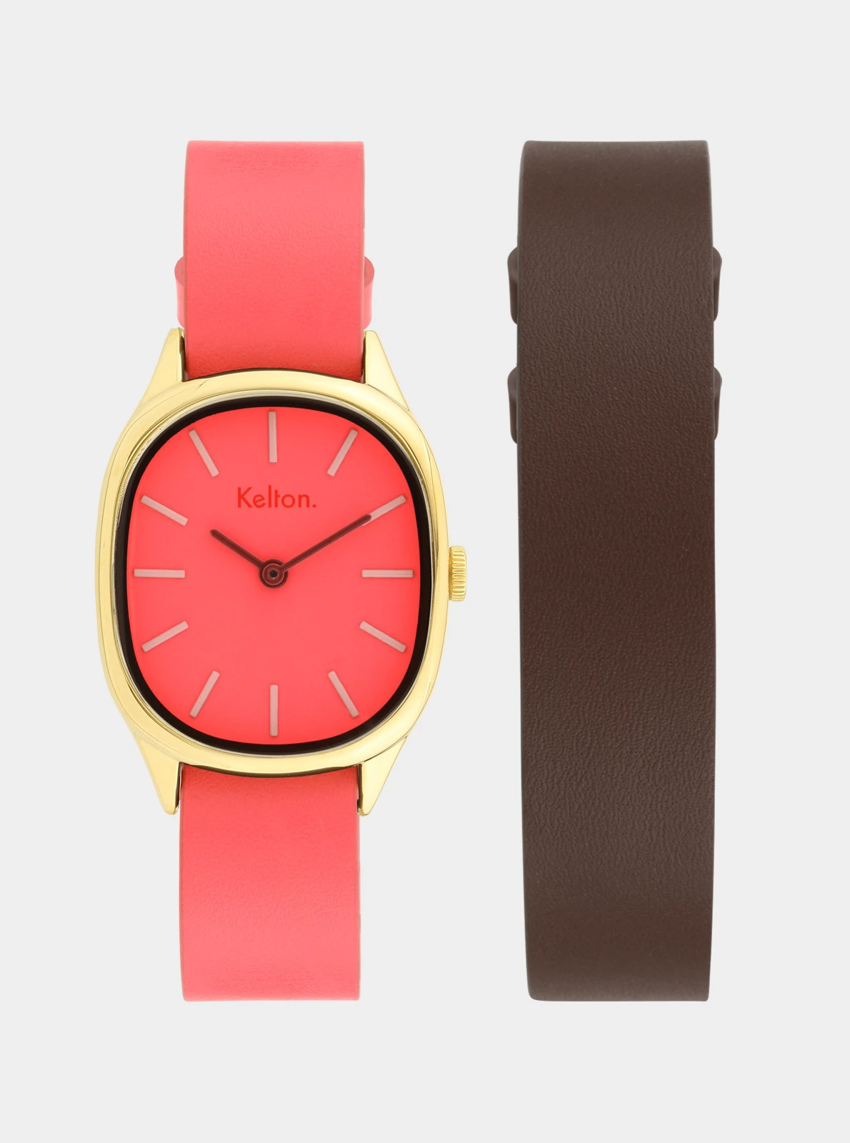 A Colorama watch, two straps. Two autumnal shades to accompany the most colorful months of the year. Here, a very powdery combination, like powdery pink lips biting into a chocolate éclair.