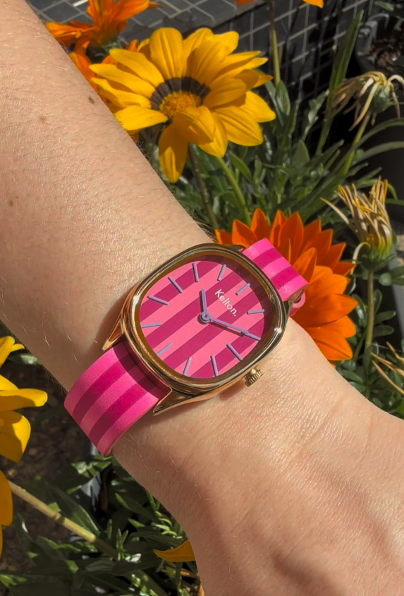 Fruit salad and fresh sunshine, that's the spirit of this new Colorama striped collection. It's summer, the beach and picnics in the shade of pine trees on your wrist.