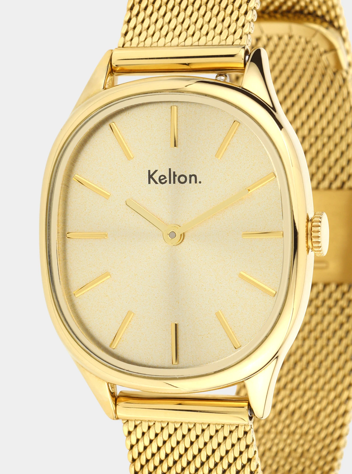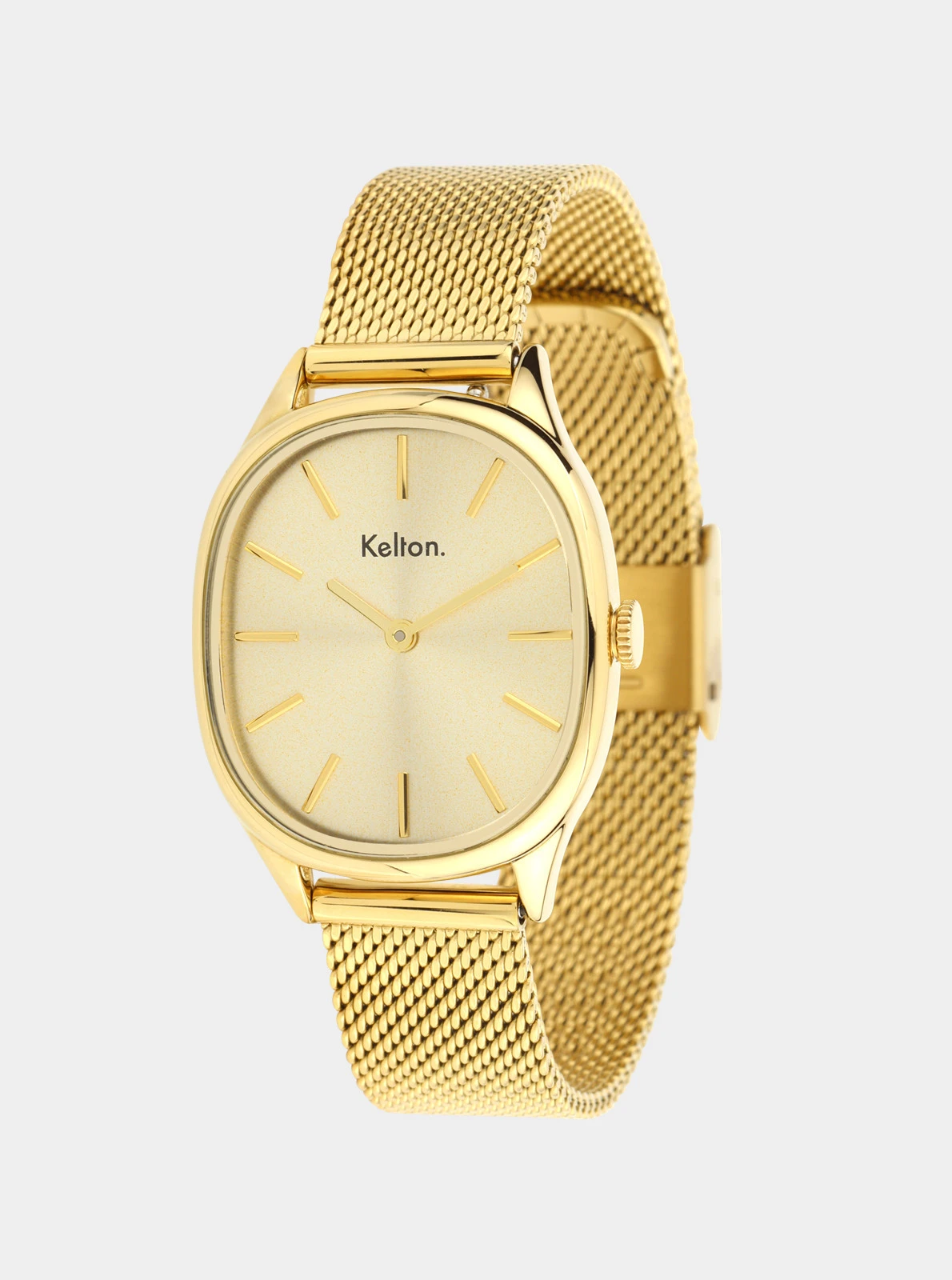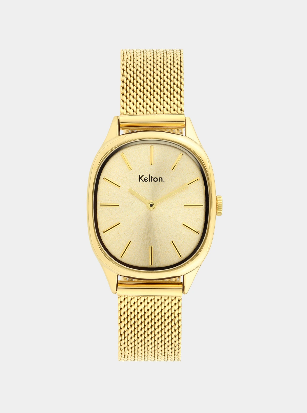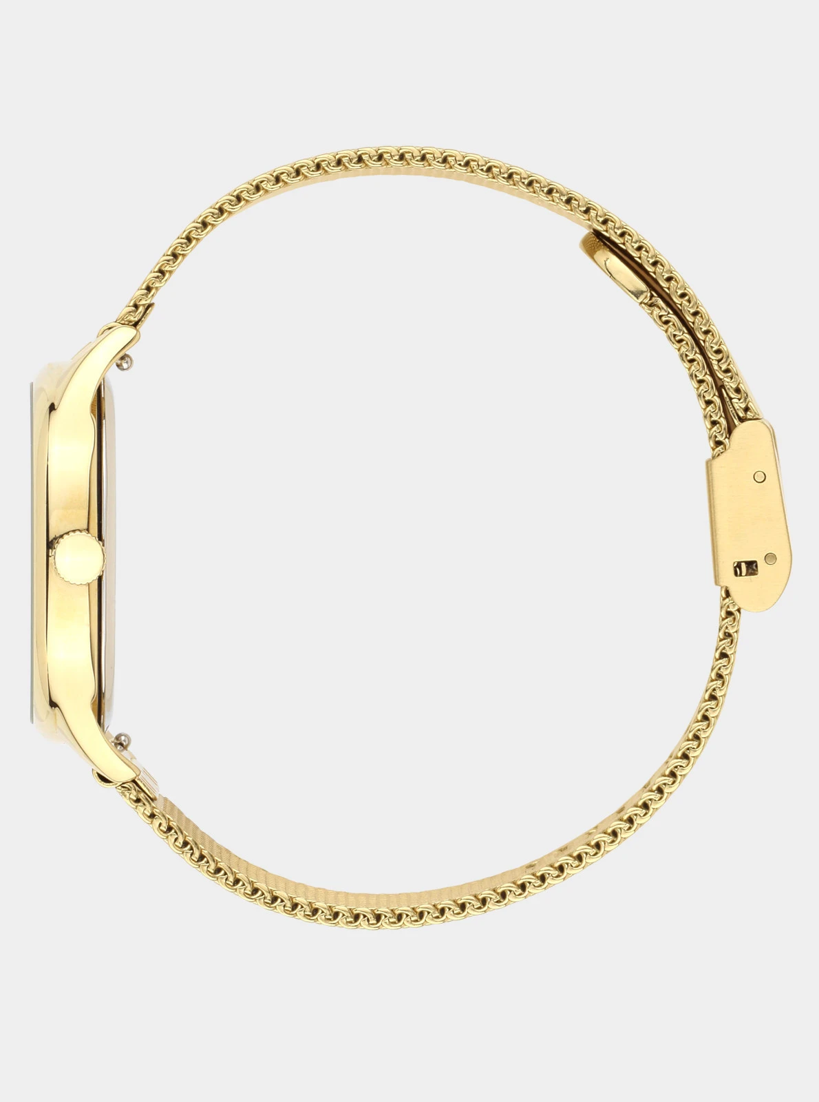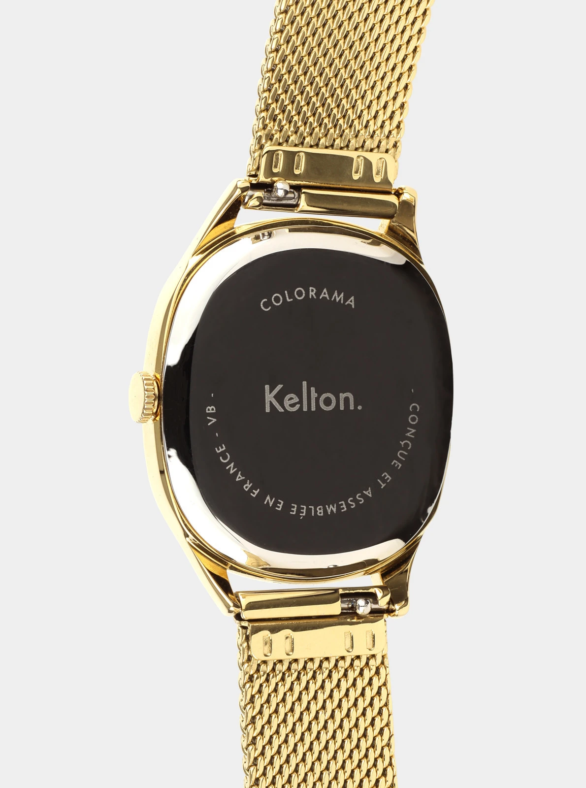 A small revolution at Colorama: here is a full metal version, all in gold (well, almost). 14 mm gold-plated stainless steel mesh bracelet.