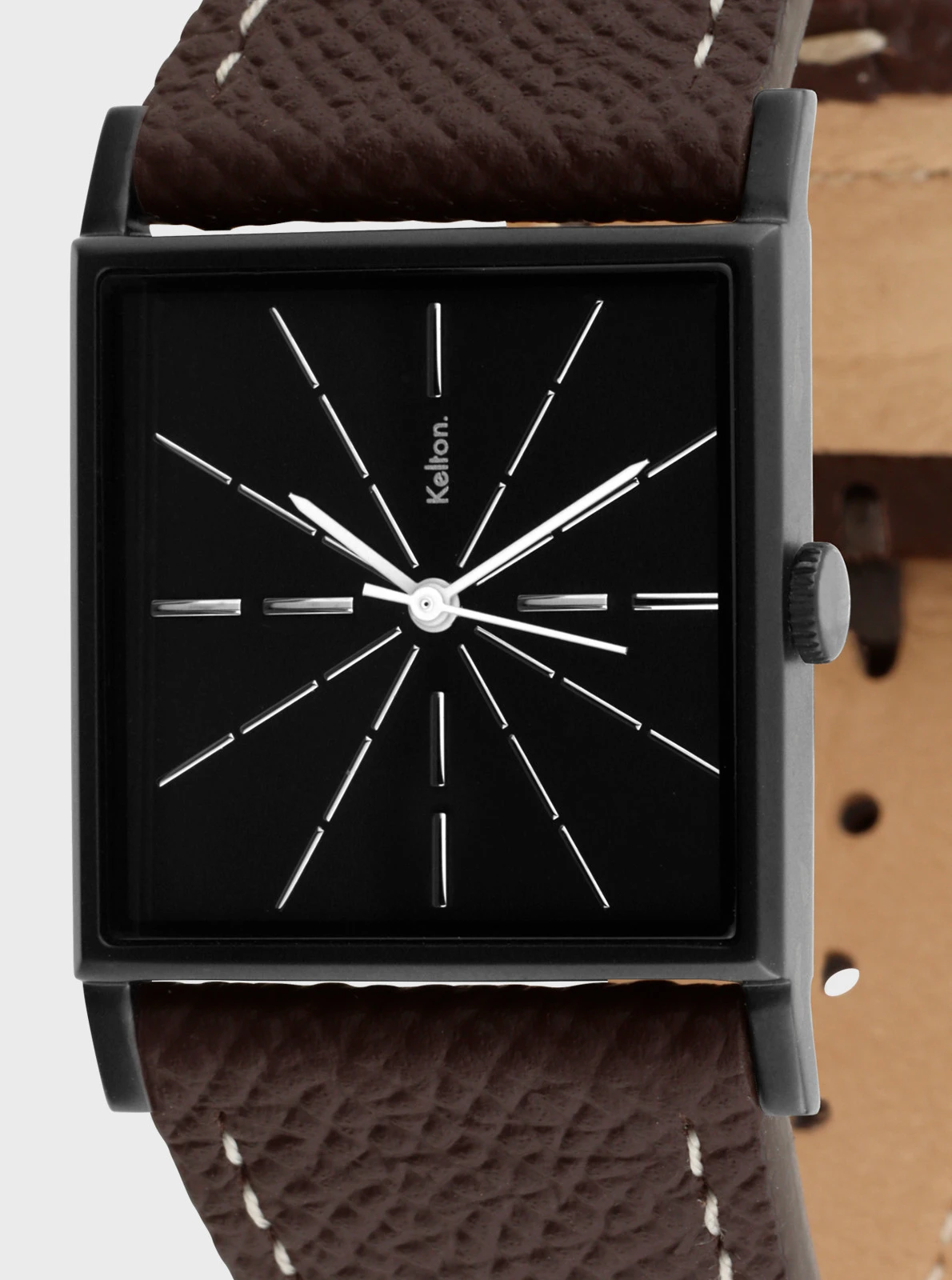 L’astre fait peau neuve et s’équipe d’un so British* bracelet Epsom.  Élégance redoublée pour cette montre carrée qui n’en manque pas.