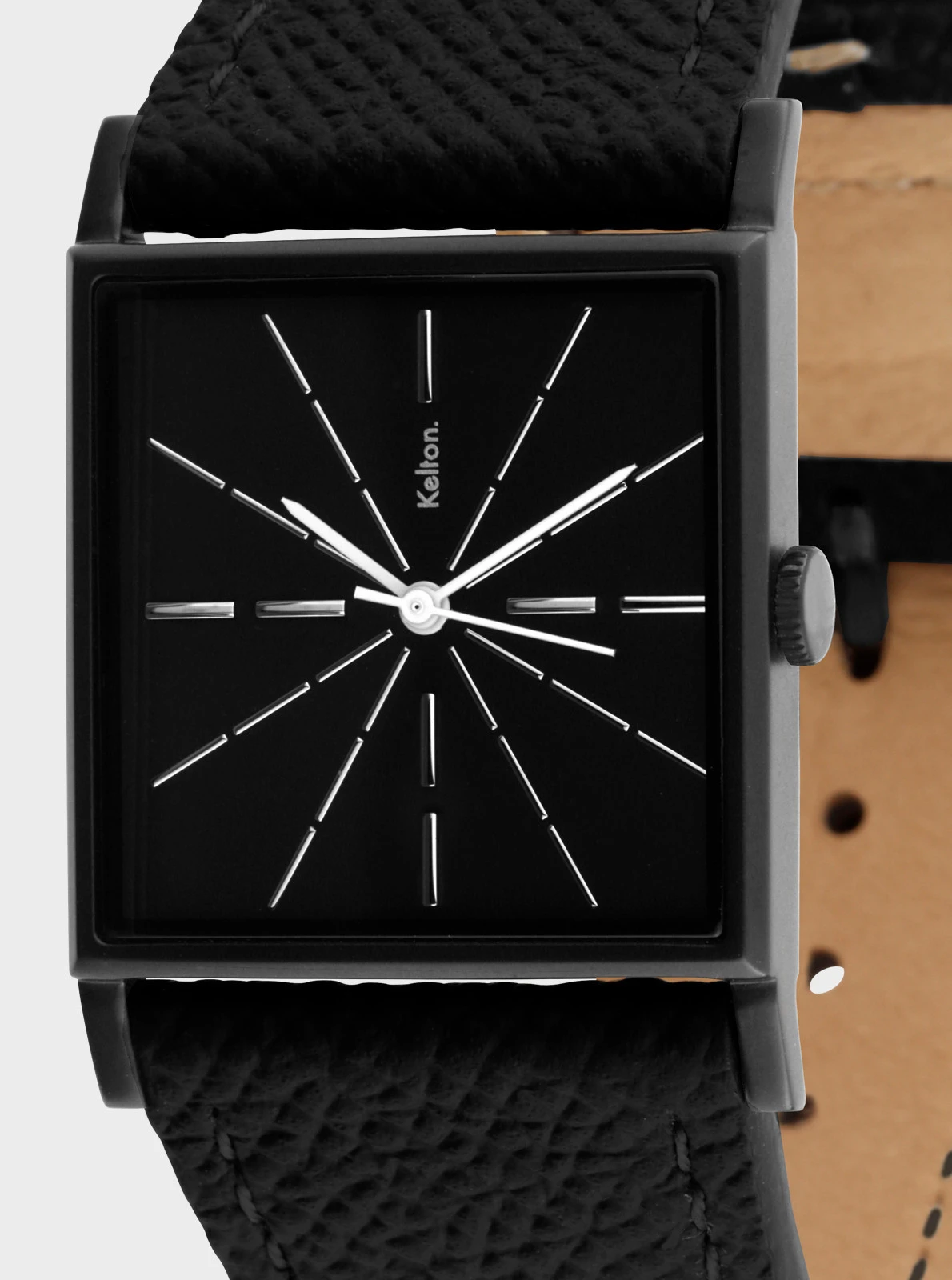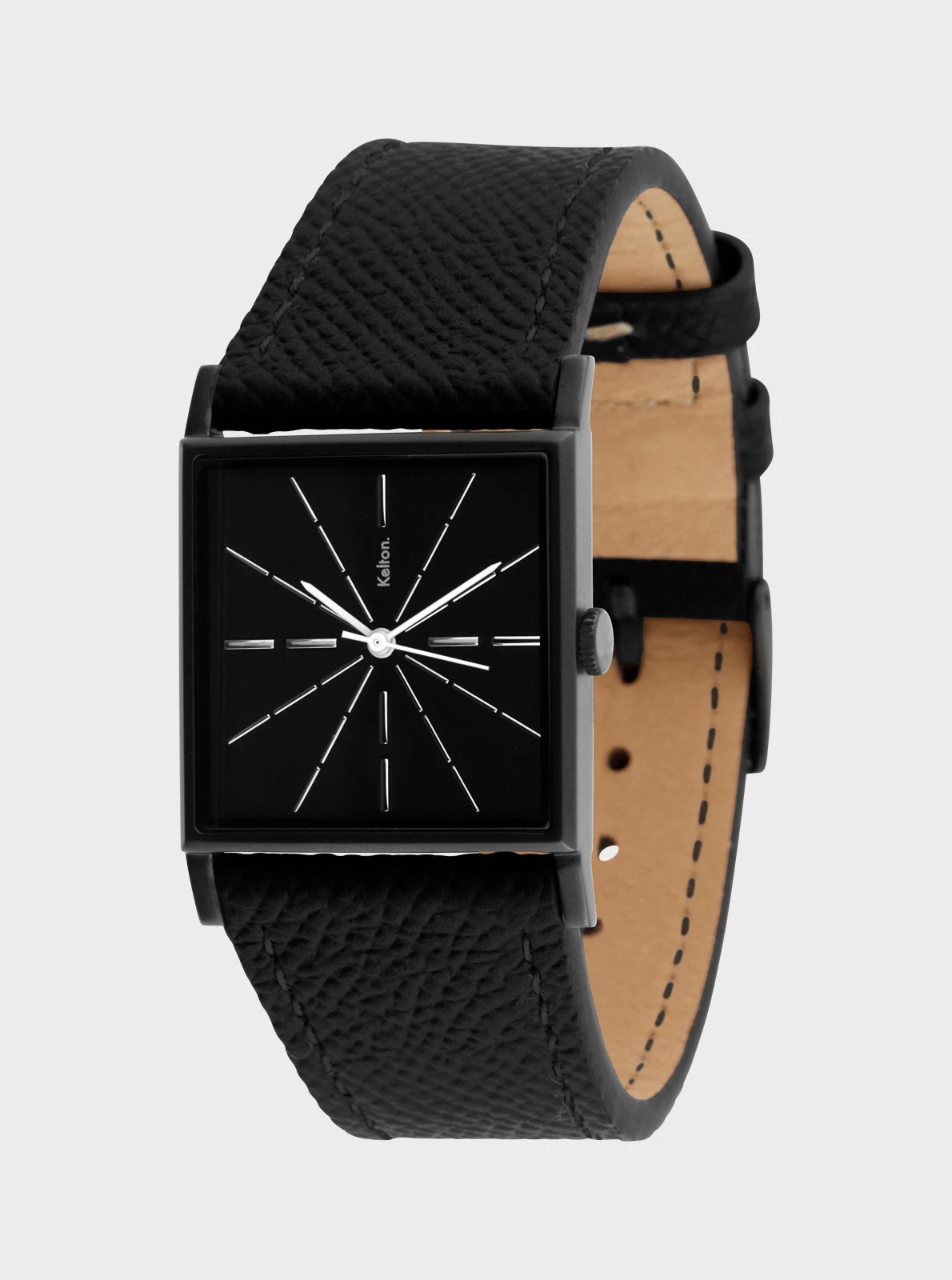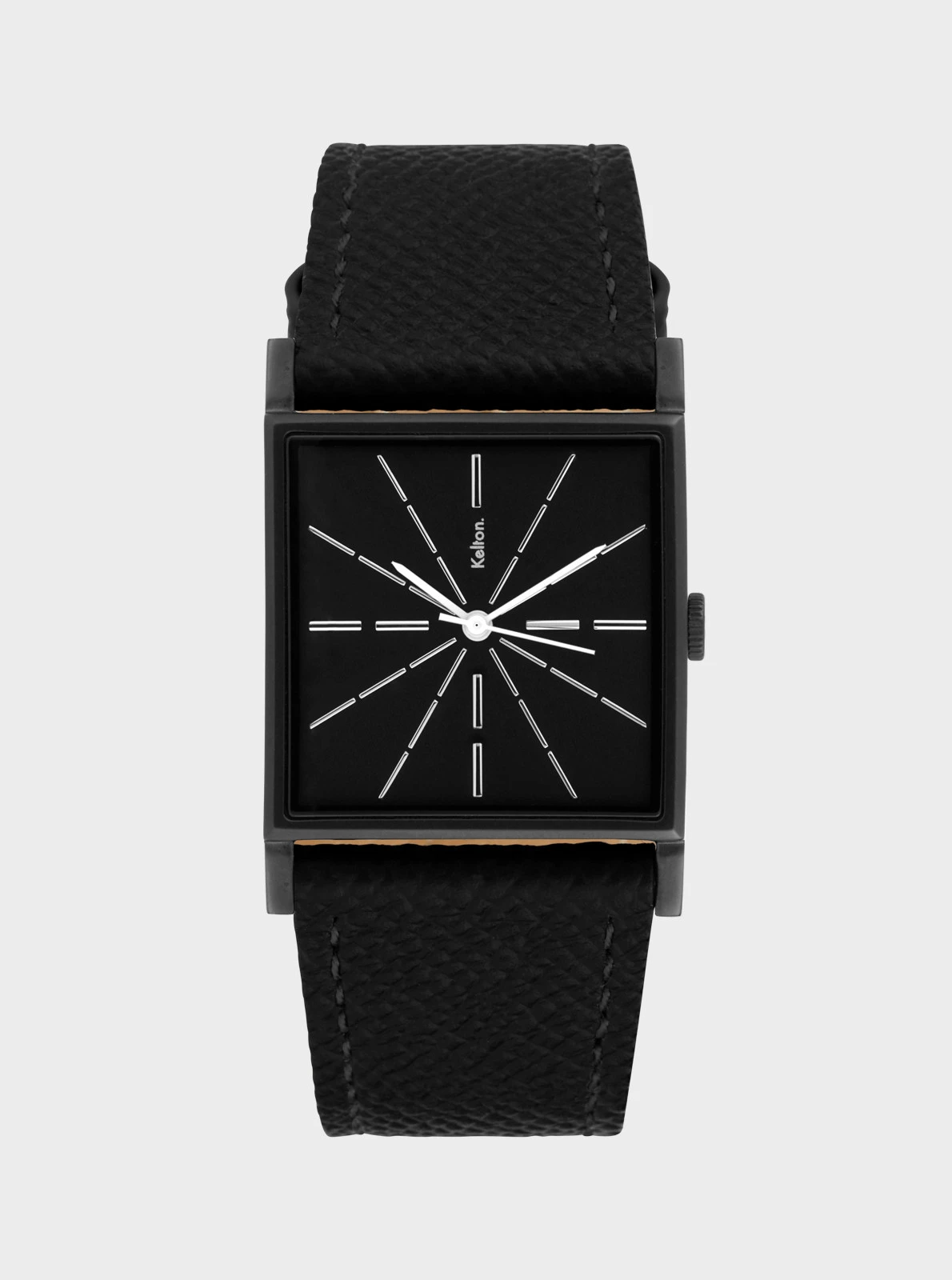 L’astre fait peau neuve et s’équipe d’un so British* bracelet Epsom. Élégance redoublée pour cette montre carrée qui n’en manque pas.