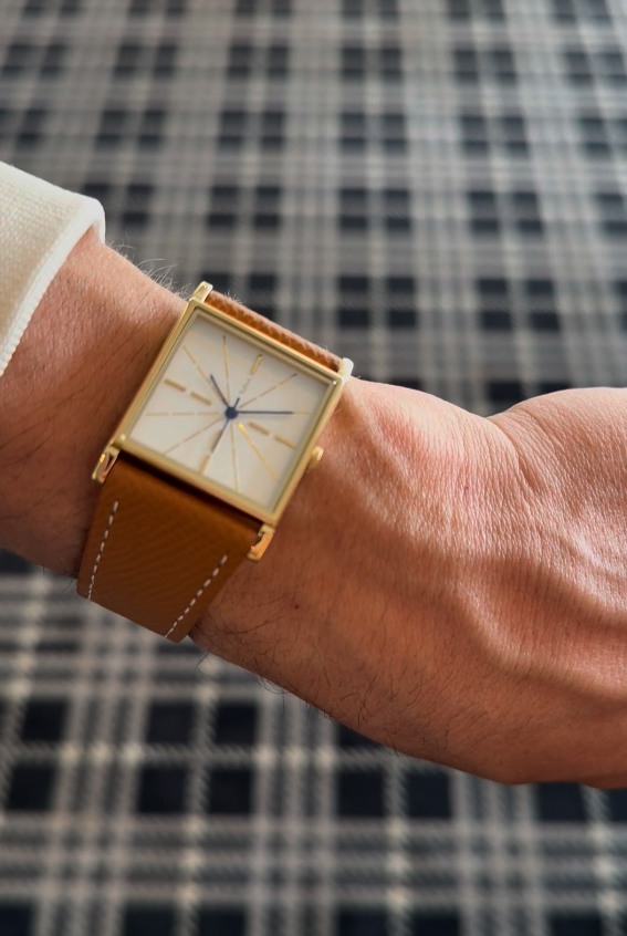 Voici la version Supergold de notre Astre, c’est un soleil brillant de mille feux et carré, que vous portez au poignet.