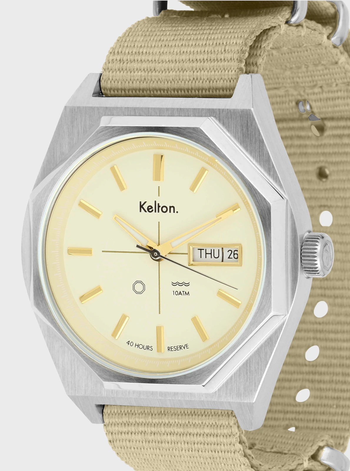 Montre automatique Octogone champagne nato sable