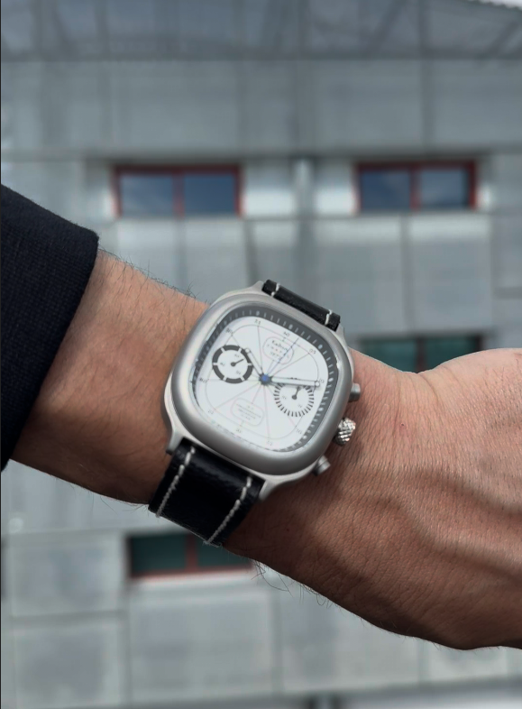 Notre modèle 1972 est un chrono mécanique à remontage manuel. Sportif par essence, il ajoute l’affichage de temps chronométrés à la lecture de l’heure courante. Pour le créer et le développer, nous avons collaboré avec la manufacture Chapal, dont l’histoire est intimement liée à celles de l’aviation et de l’automobile.