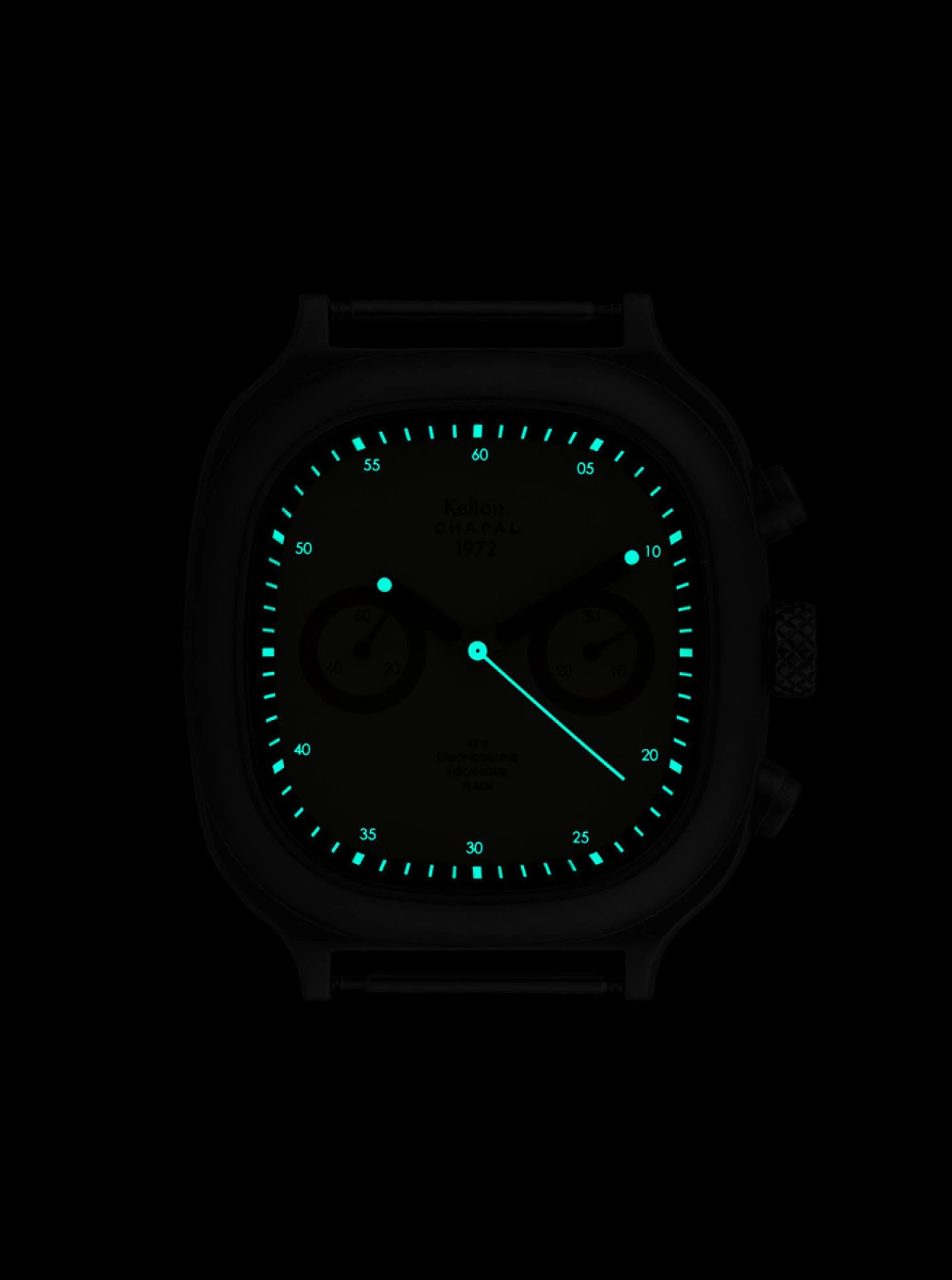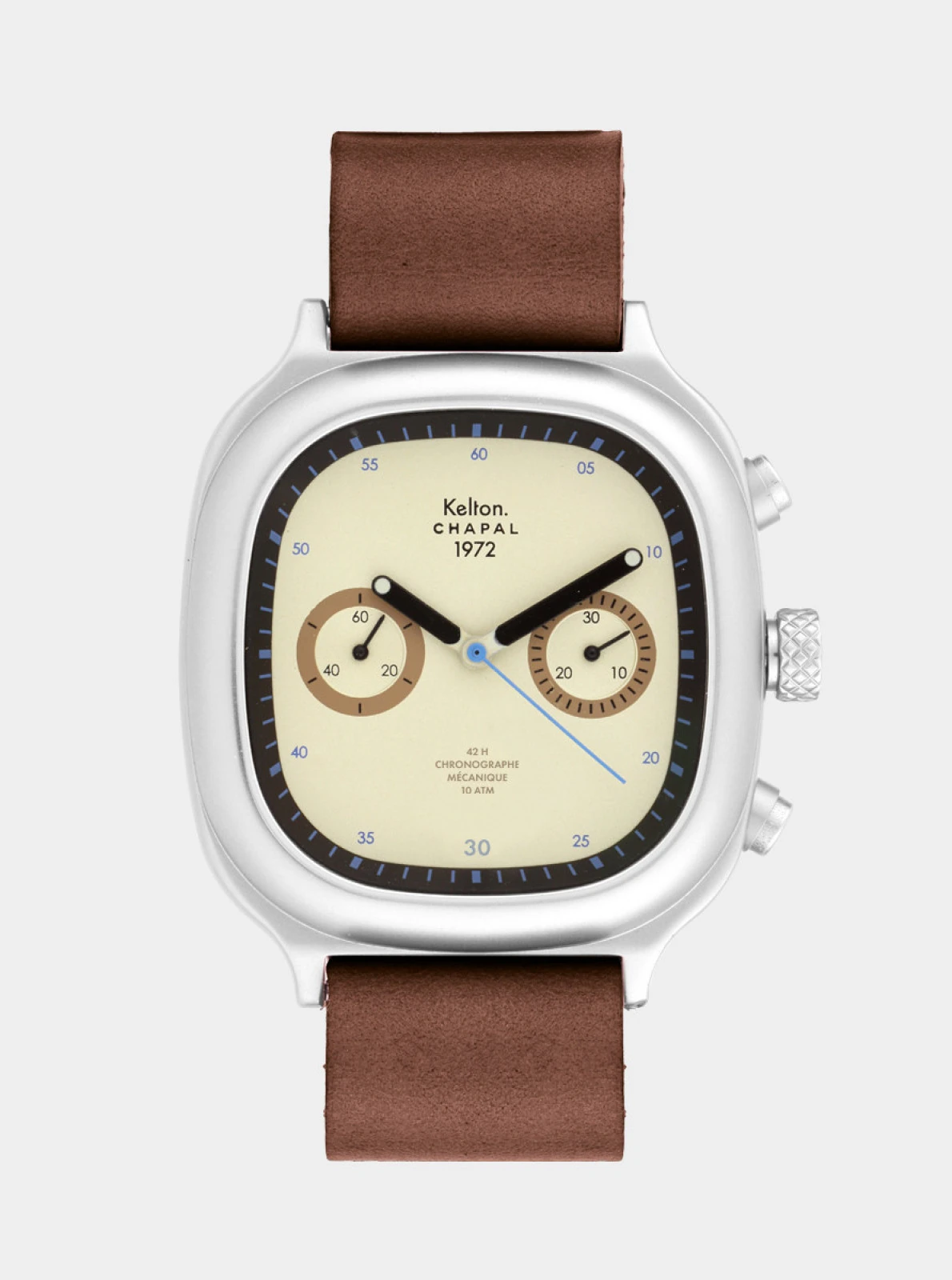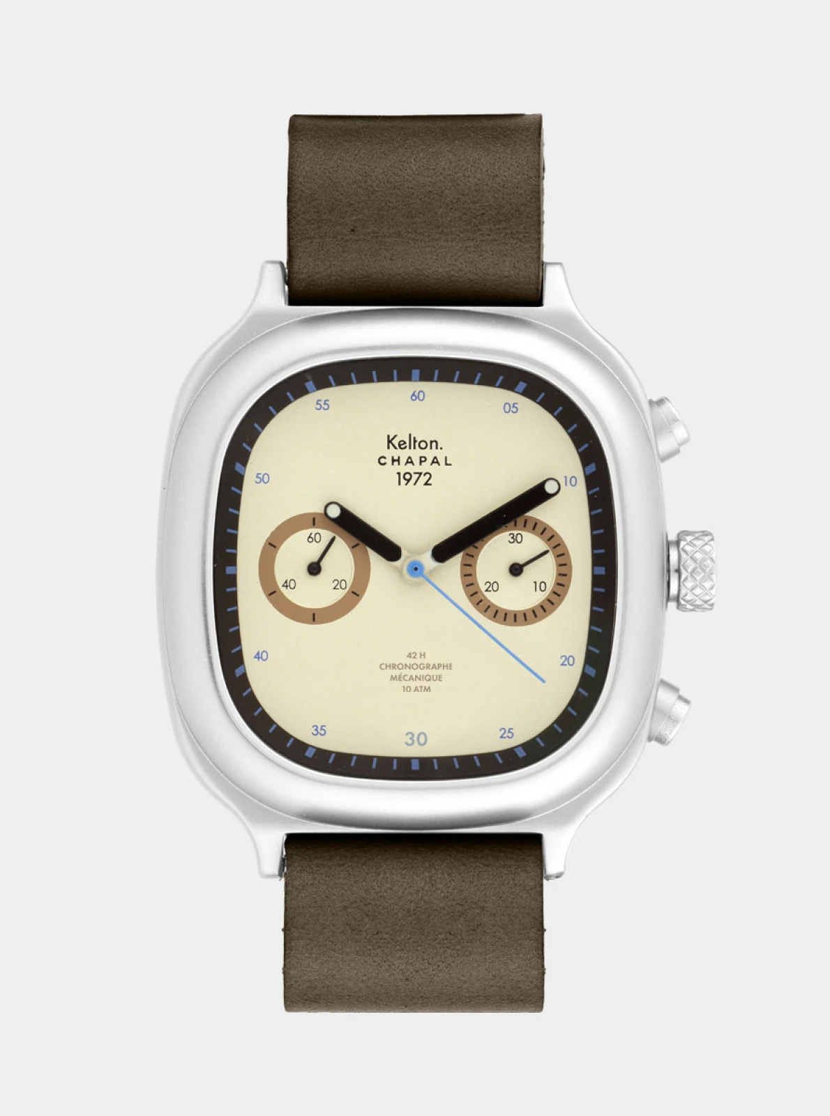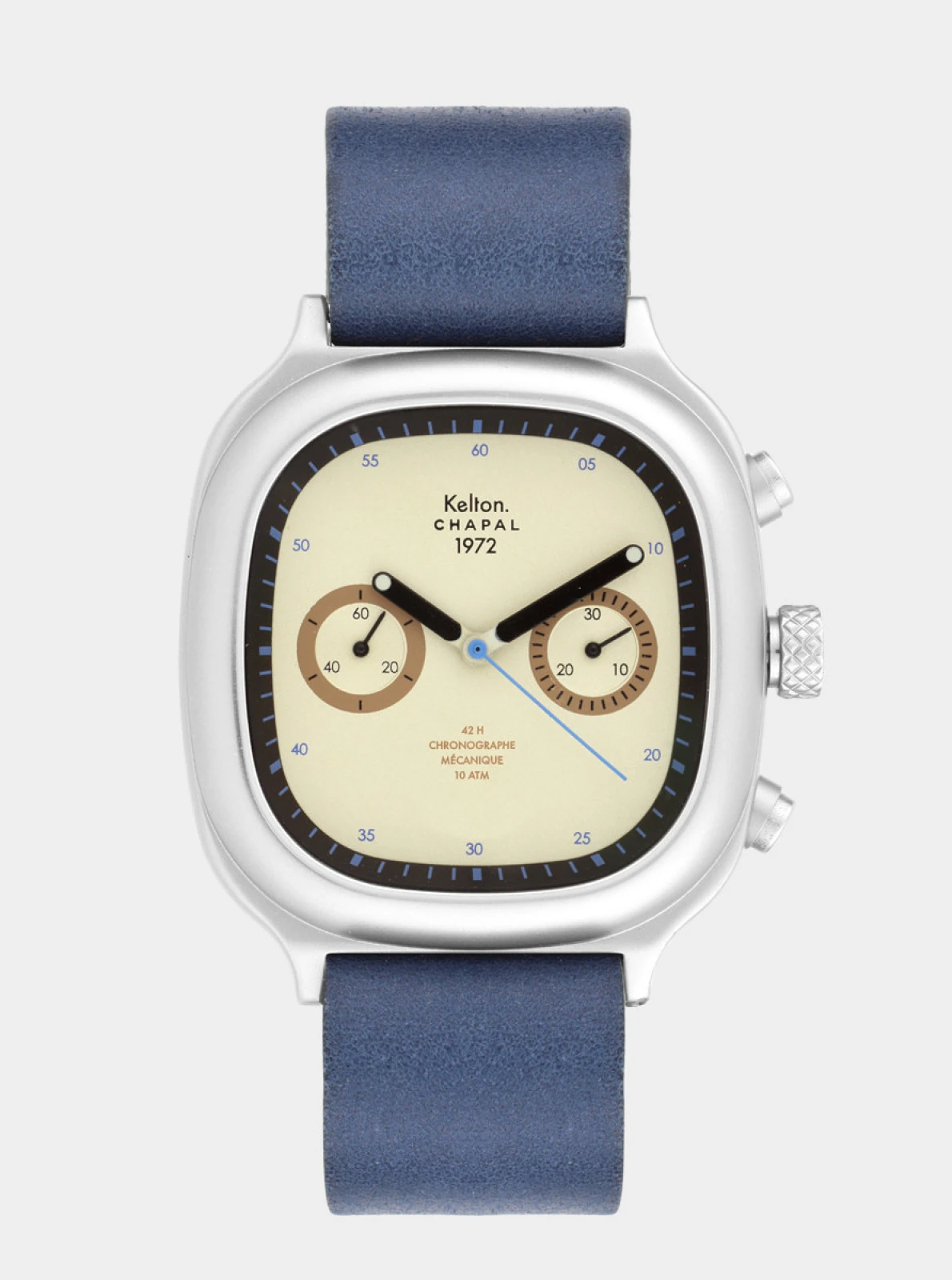 La montre chronographe 1972 Skysand Kelton x Maison Chapal est une édition limitée et numérotée de 1 à 100.