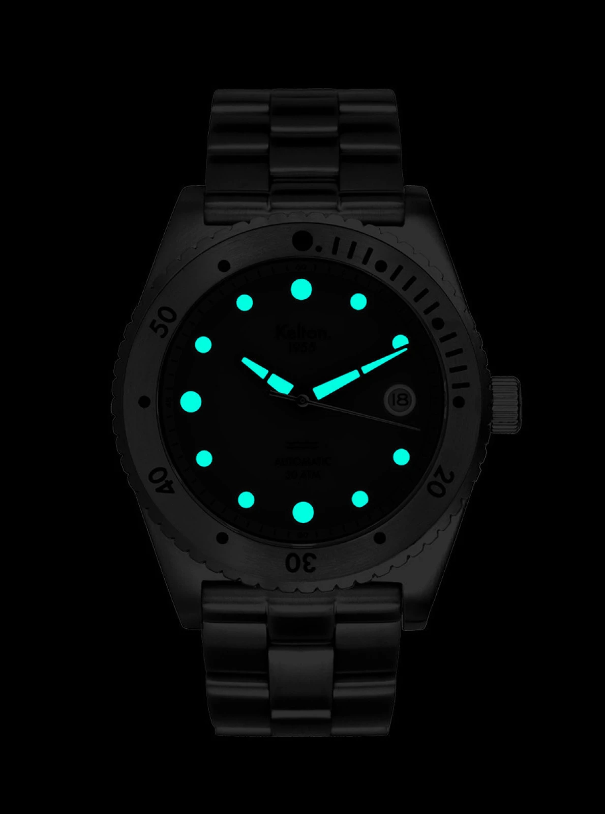 Voici la montre avec laquelle vous allez pouvoir enfin vous balader sans crainte et jusqu’à - 400 m. dans la zone mésopélagique, qui débute à 200 mètres et se termine à 1000 mètres sous la surface. L’endroit est crépusculaire et plus de 99% des rayons lumineux y absorbés, d’où l’importance du Superluminova (qui couvre index et aiguilles). Vous y croiserez, par exemple - à la lueur bleutée de votre montre - le calamar géant.