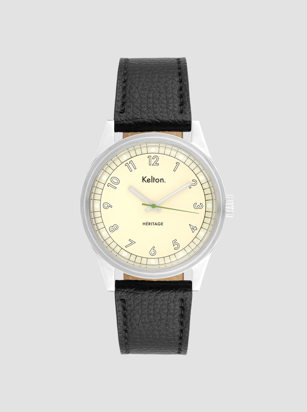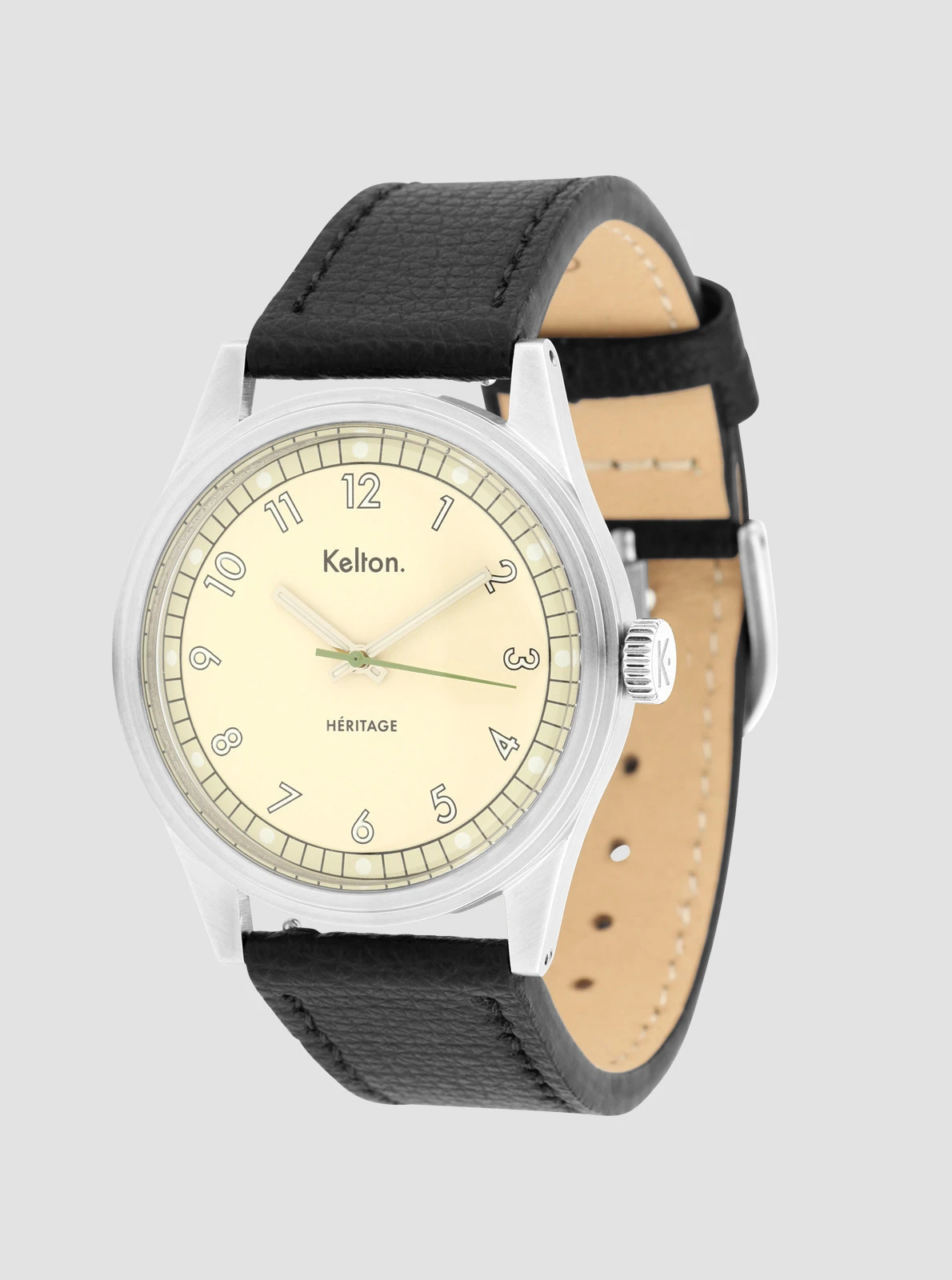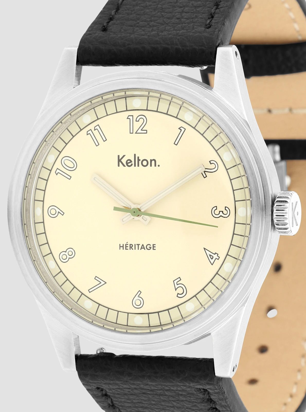 L’Héritage champagne est le troisième modèle de cette nouvelle collection majeure. Cette fois, il s’agit d’être discret, autant à l’aise sur un poignet féminin que masculin, avec son petit diamètre (38 mm) elle est la plus effortless chic de toutes les Kelton. Le cadran champagne fera de ce modèle le plus vintage de la collection, à n’en point douter.