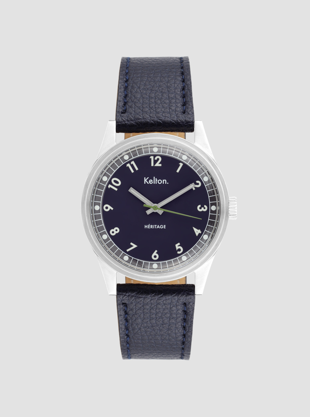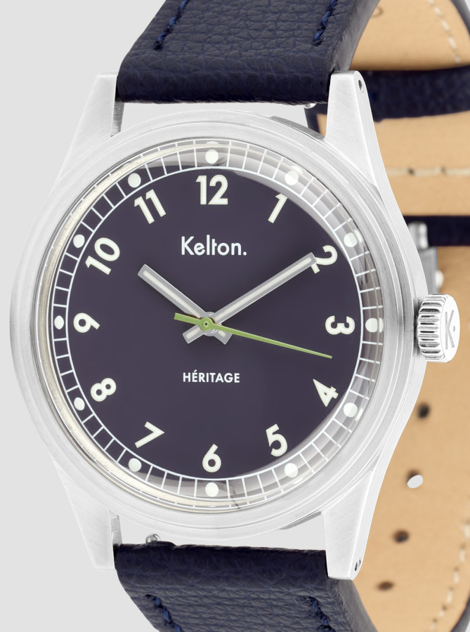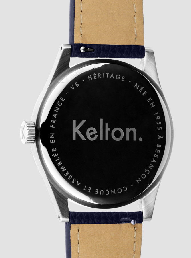 L’Héritage navy est le deuxième modèle de cette nouvelle collection majeure. Cette fois, il s’agit d’être discret, autant à l’aise sur un poignet féminin que masculin, avec son petit diamètre (38 mm) elle devient la plus effortless chic de toutes les Kelton. Le cadran navy nous rappelle l’origine de ce modèle, les fameuses dirty dozen, chères à tous les amateurs de garde-temps.