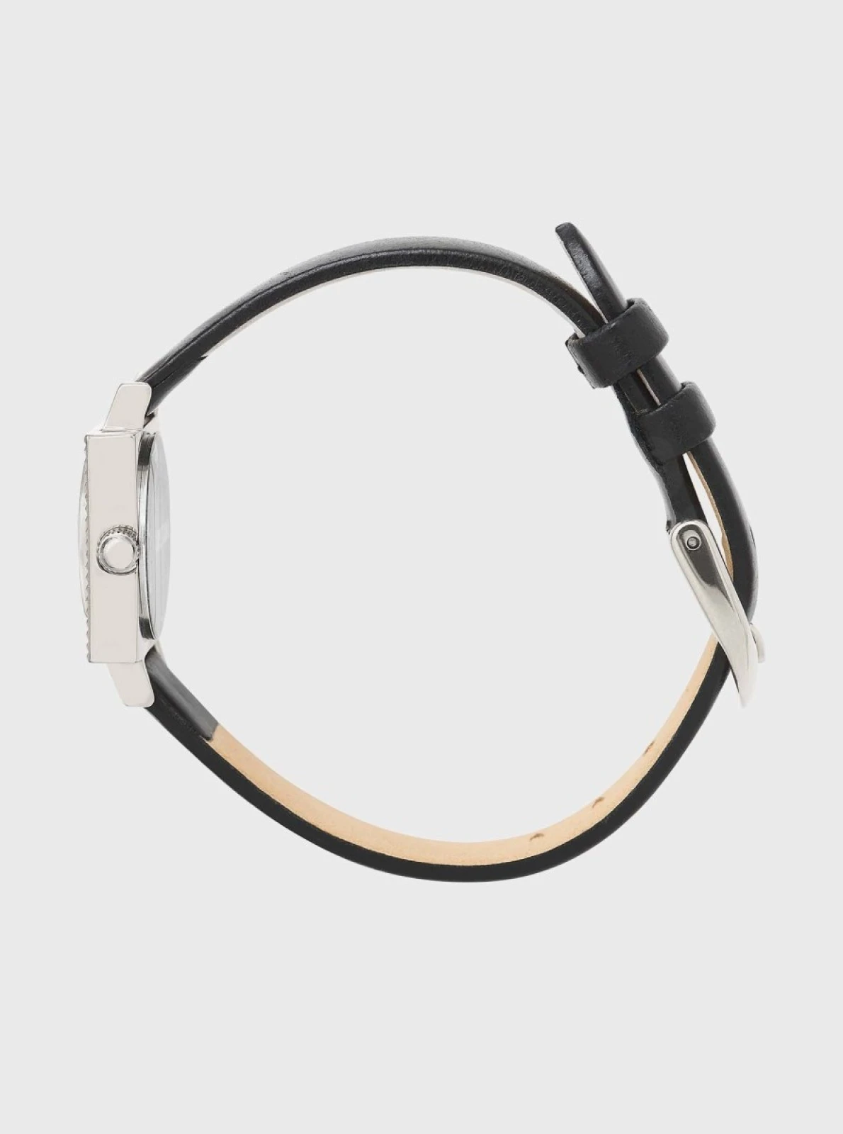 TECHNIQUE Référence 9123802 Entrecorne 10 mm Hauteur corne à corne 28 mm Épaisseur 7 mm Diamètre du boîtier 17 mm Boîtier Laiton Couleur du cadran Argent Verre Minéral Étanchéité 3 ATM Poids total 14 g Type de mouvement Quartz Mouvement Miyota SR32 Conçue et assemblée en France.
