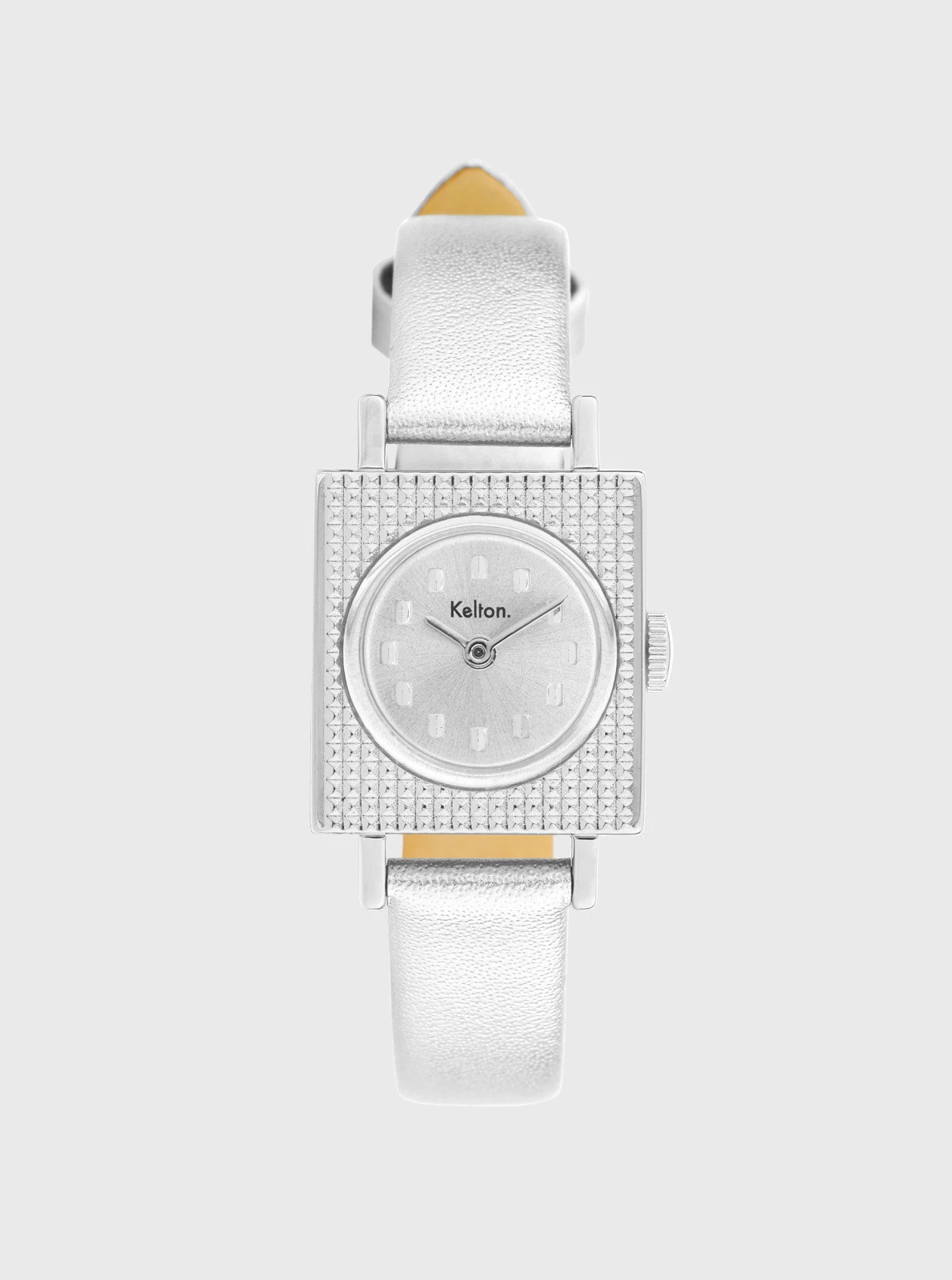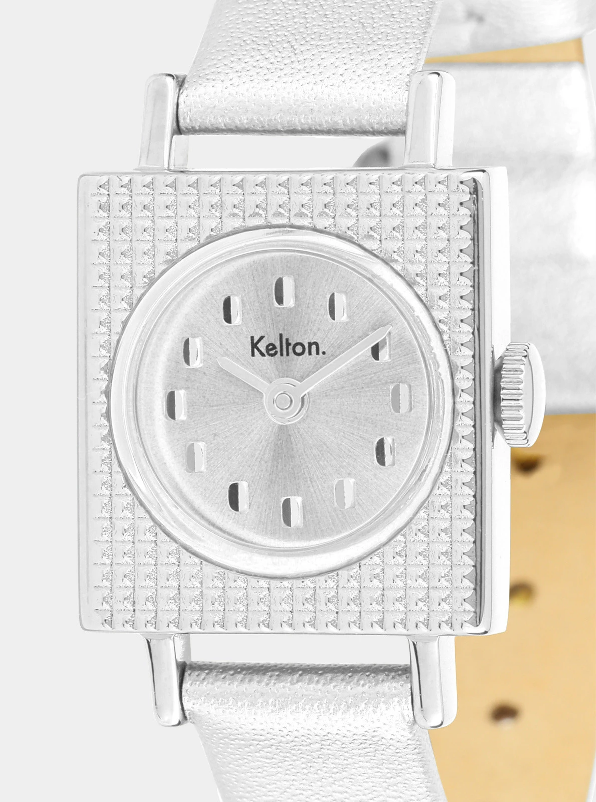 Une réédition à l’identique d’un modèle emblématique des années 50, sa petite taille, sa forme géométrique et sa finition pointe de diamant évoquent le luxe et la sophistication du style Art déco et des années folles. Ici une version total argent qui vient ajouter une irrésistible touche disco.