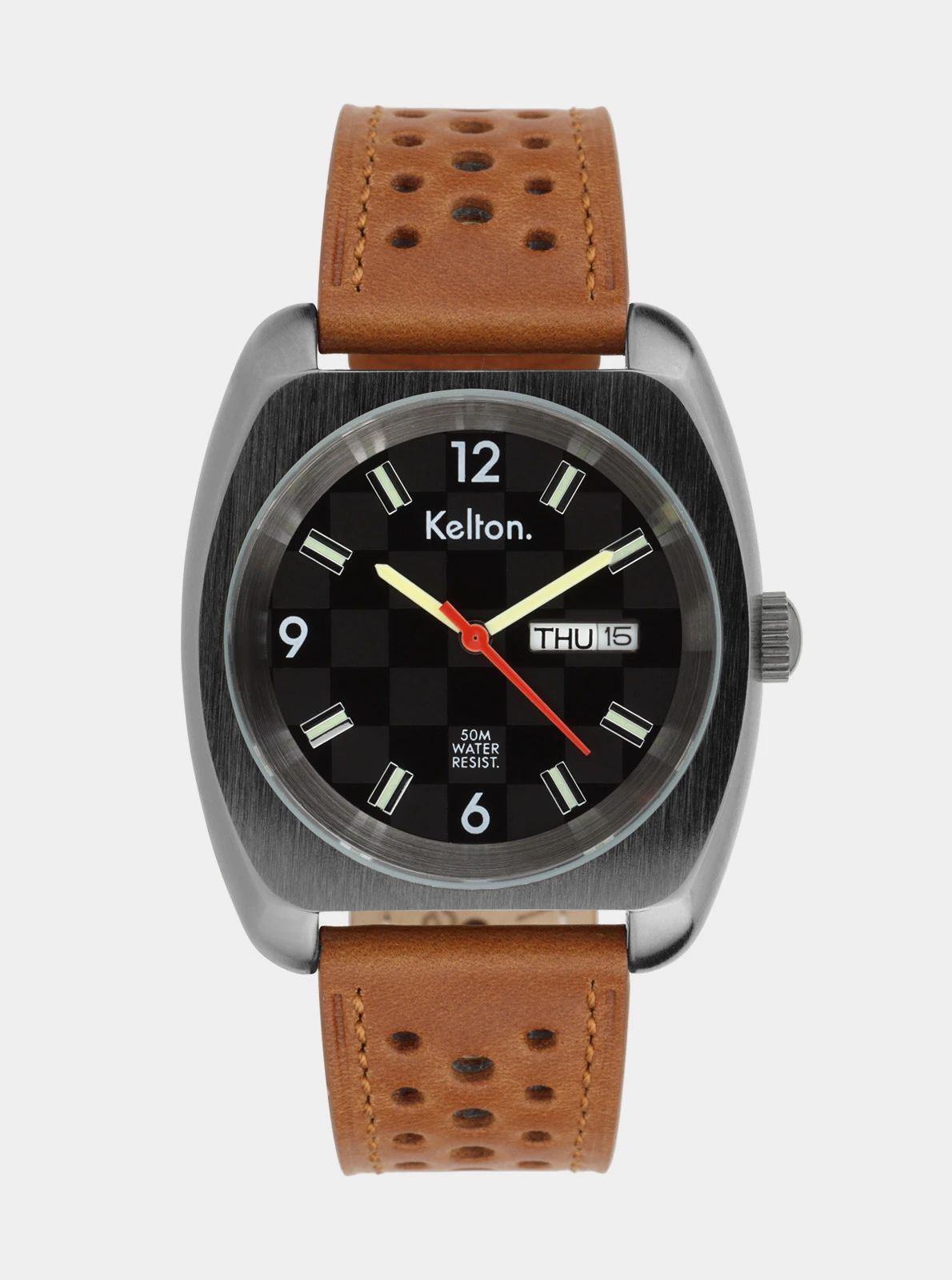 Une nouvelle RC suréquipée fait son entrée sur le circuit Kelton. Son cadran arbore, en nuances de gris et de noir, le motif du damier, emblématique des courses automobiles.