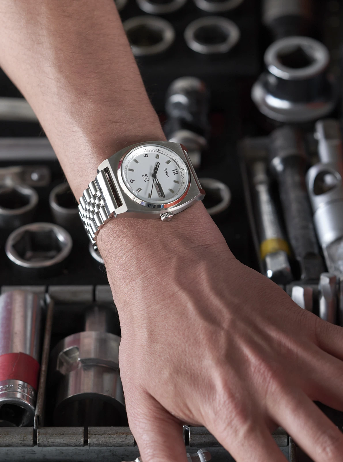 Cette RC 24 est équipée d’un mouvement automatique increvable, le fameux Miyota 8205 et d’un bracelet encore plus fameux, élégant, souple, imparable, le Jubilee* en acier inox massif.
