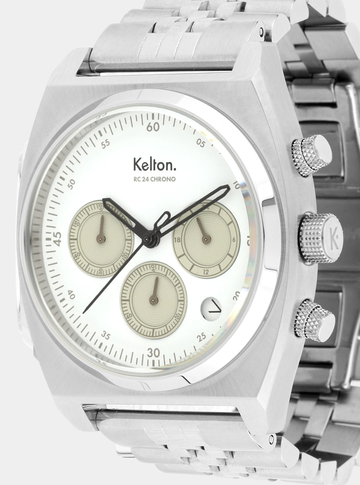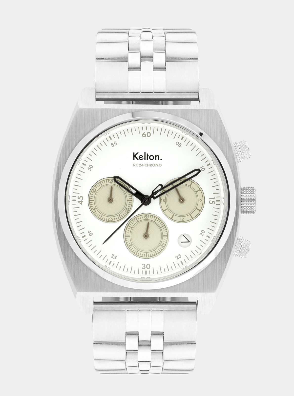 Les montres RC sans chrono, c’est comme un Fast and Furious sans Vin Diesel : pas possible. Voici le Chrono RC24 cadran blanc, équipé du légendaire mouvement VK 63 Hattori (Seiko), hybride alliant la précision du quartz à la fluidité de l’horlogerie traditionnelle, grâce à son module automatique*. Et cerise sur le gâteau, un bracelet Jubilé, le fameux, le majestueux, l’imparable bracelet Jubilé en acier inox 316L.