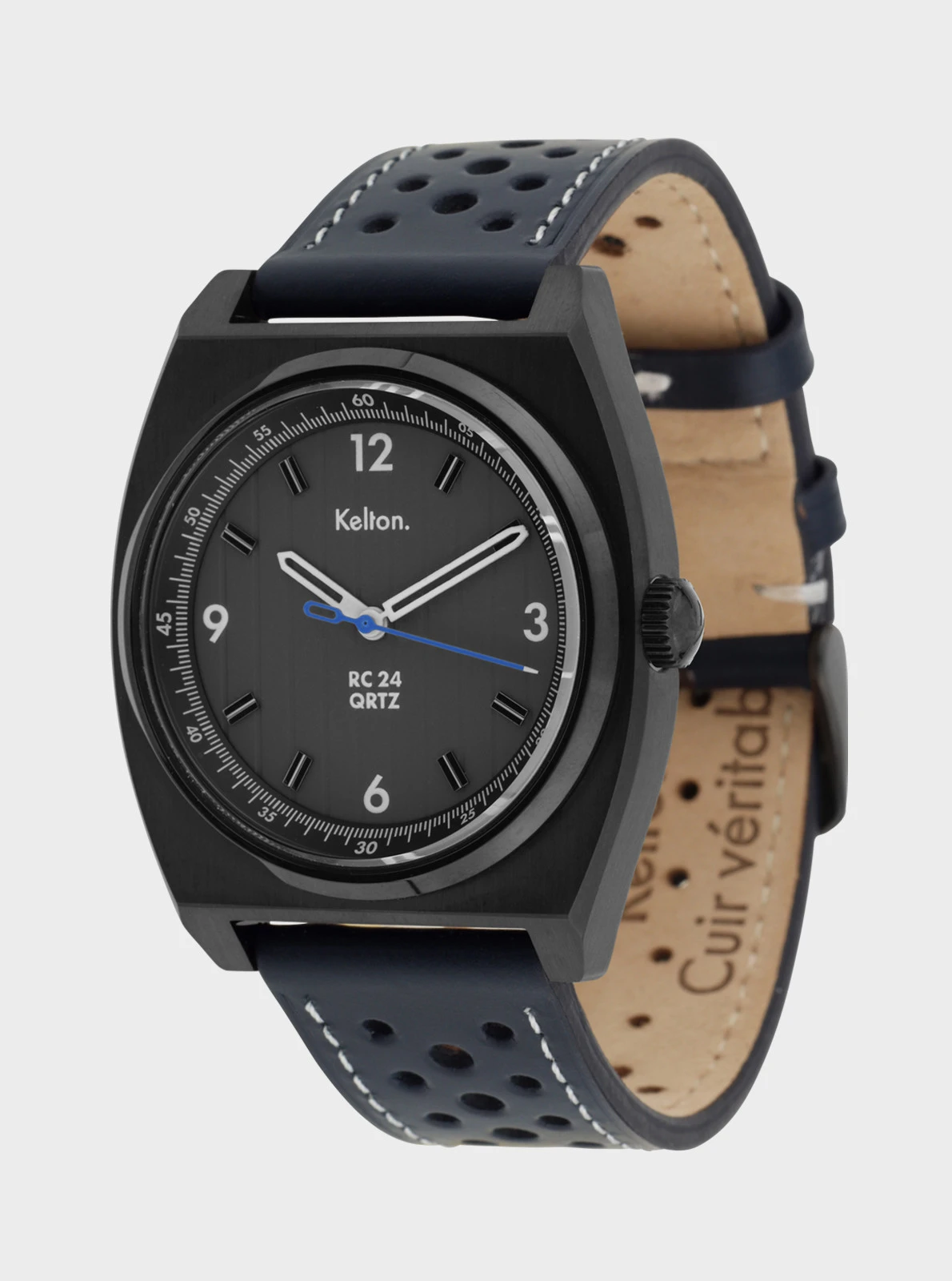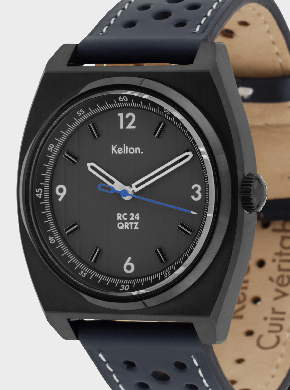 Dans l’écurie RC 24, voici la QRTZ*. Toujours ce boitier acier brossé 616 L au design augmenté en finesse et nervosité, avec cette fois un petit truc en plus : pas un aileron arrière, non, mais un joli travail sur le cadran, finement rainuré (gage d’une plus grande adhérence dans les virages ;).